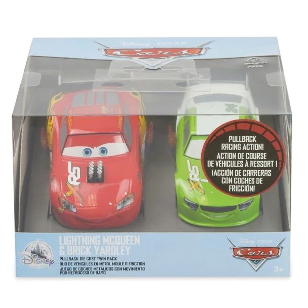 Double your driving fun with this twin pack of XRS Drag Racer Lightning McQueen & Brick Yardley die cast cars. Featuring pullback action and wheelie mode, these race cars will put the play time pedal to the metal.