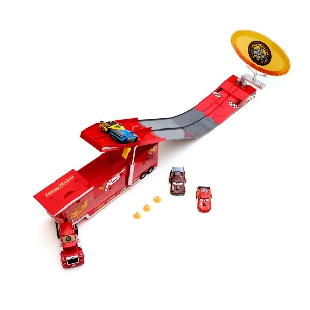 Mack, the Rust-eze race team’s trusted carrier, shows his versatility with this Cars playset. In addition to storing the four included XRS die cast cars, Mack features light and sound effects and transforms into a stunt racetrack so two cars can duel it out in a high octane sprint!