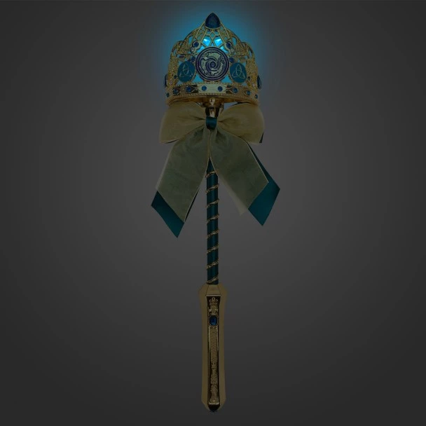 A wave of Merida’s wand commands a kingdom of courage. Topped by a bejeweled crown adorned with a sculptured cameo, this shimmering scepter with two light-up settings makes a bold and Brave costume accessory.