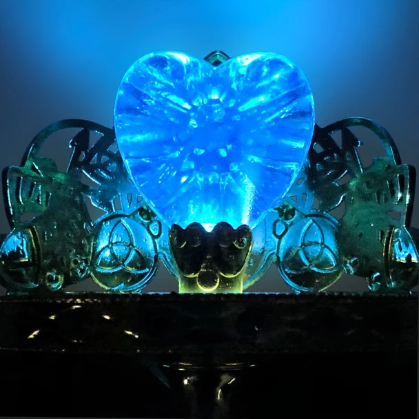 - Press jeweled button in handle to activate light-up features