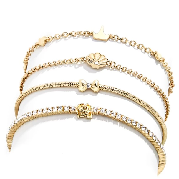 A crown, a shell, a bow, a rose. Unmistakable Disney Princess icons evoke so much without saying a word. Kindness, love, intelligence, hope and so many more qualities are conveyed with this set of four beautiful Disney Princess bracelets by BaubleBar. Each one is as different as a princess. Worn together or separately, they are sure to capture one’s heart.
